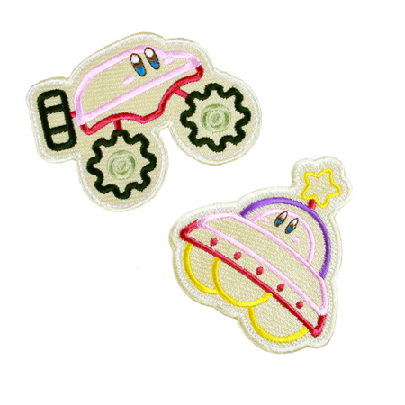 Inspired by the game, Kirby’s Epic Yarn, this collectible patch set features Kirby in Saucer and Off-Roader form.