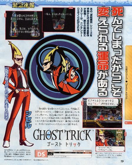 Not only has Famitsu revealed a brand new Okami title for the DS, but the magazine also announced a new game that is being developed by the Ace Attorney director and the producer of the sleeper hit Zack & Wiki. For now though, much of the title is shrouded in mystery. In fact, the only details we know right now is that it’s for the DS and it’s called Ghost Trick. We’ll fill you in with new information as it becomes available.