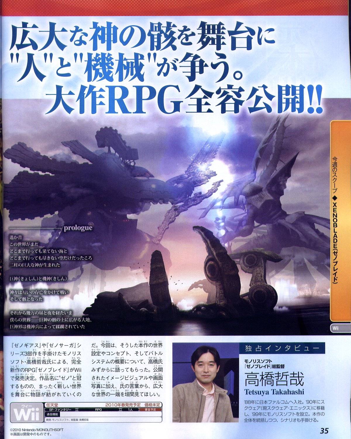 – “The world setting, story and other elements have no relation [to the Xenosaga series]. It’s a completely new title. I wanted to to have some sort of common point with the games I’ve made.” – director Tetsuya Takahashi
