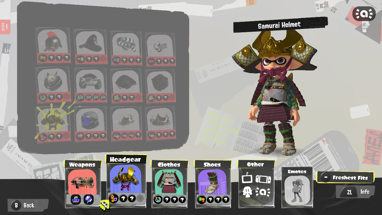 - Inkling Boy (Blue) drops a samurai-themed outfit with three separate pieces.
