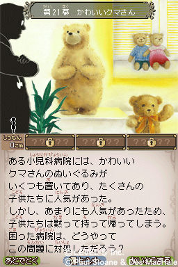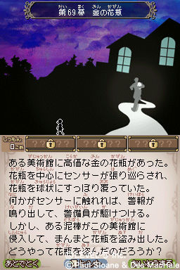 Screenshots/art in order from bottom to top: Professor Layton and the Devil’s Flute, Inazuma Eleven 2, Sloane and McHale’s Mysteries, Akira Tago’s Atama no Taisou 3rd Collection Mystery Kingdom Puzzle Solving Fairy Tails, Atama no Taisou 4th Collection Time Machine Puzzle Solving Adventure